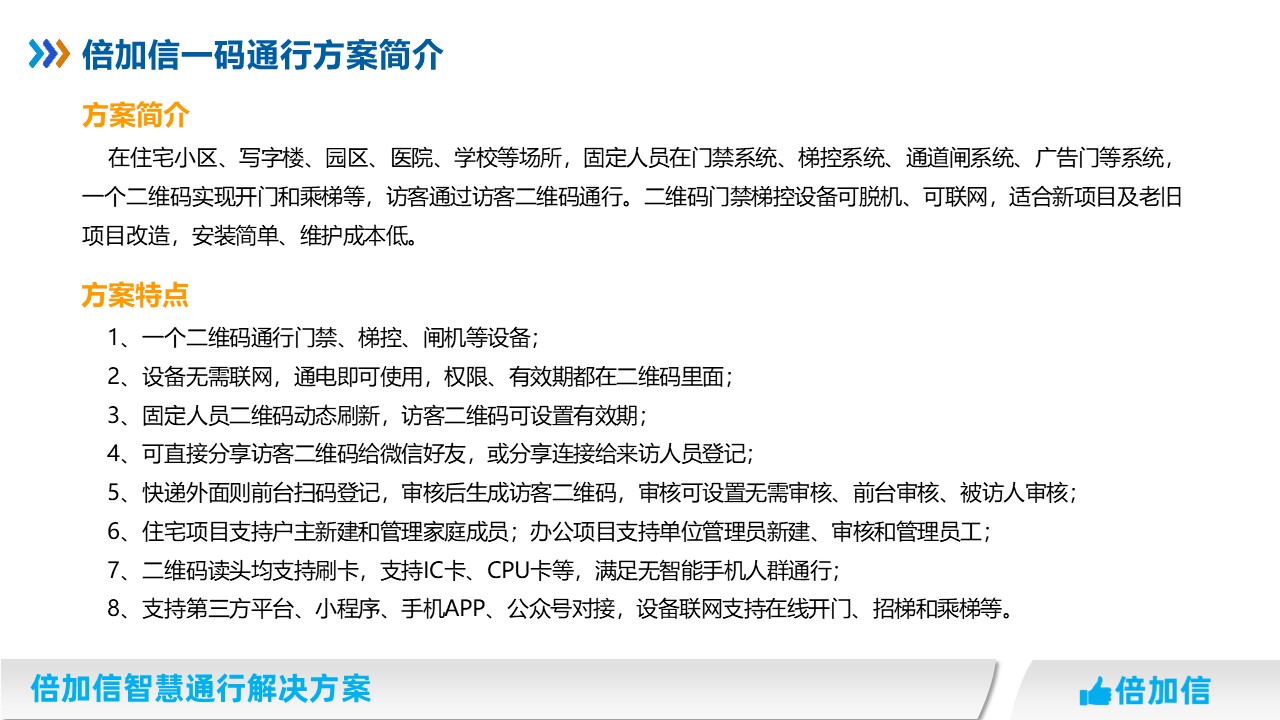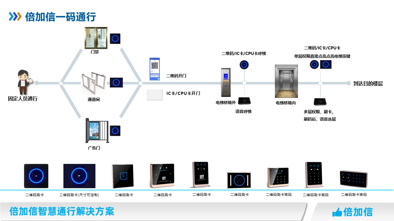 倍加信一碼通行解決方案 小程序二維碼,一個(gè)二維碼可在門禁、通道閘、電梯、廣告門等通行