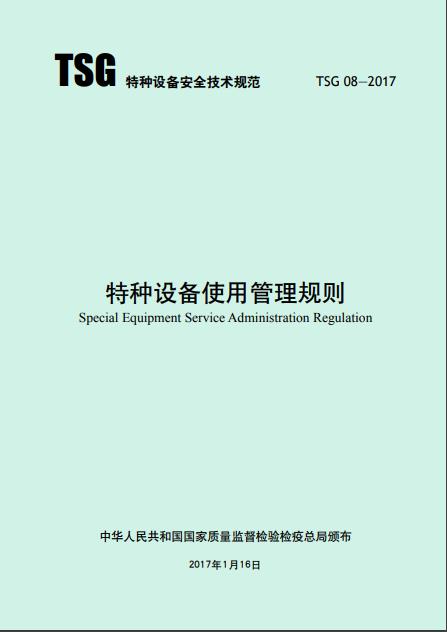 《特種設備使用管理規(guī)則 TSG 08—2017》國家質量監(jiān)督檢驗檢疫總局頒布